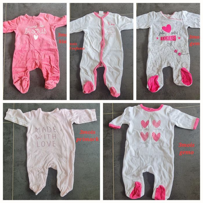 5 pyjamas velour bébé 3mois 10€ les 5 ou à l'unité 2€
