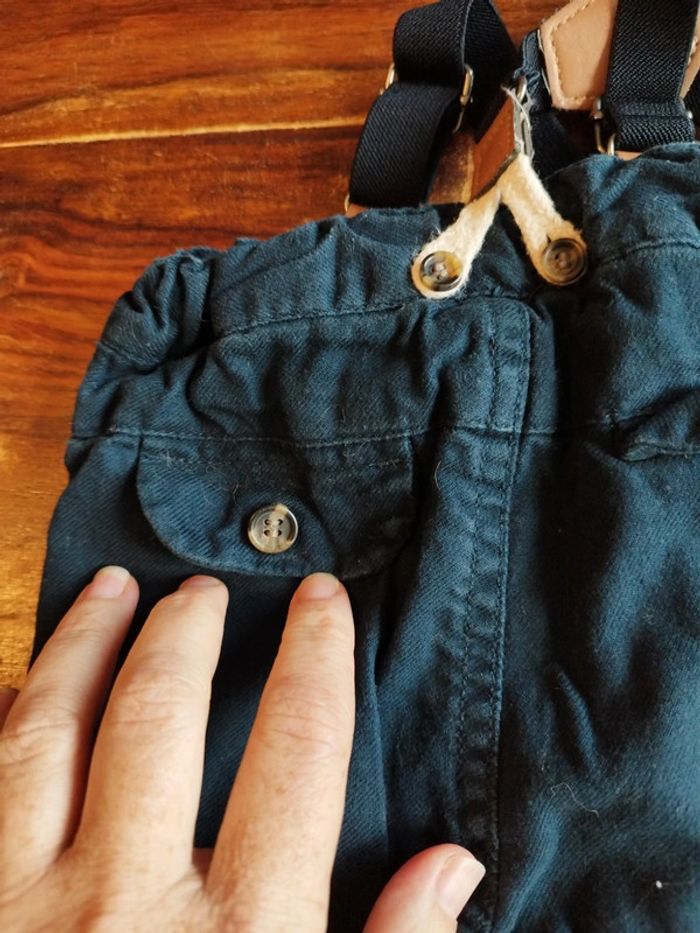 Pantalon velours marine à bretelles 18 mois