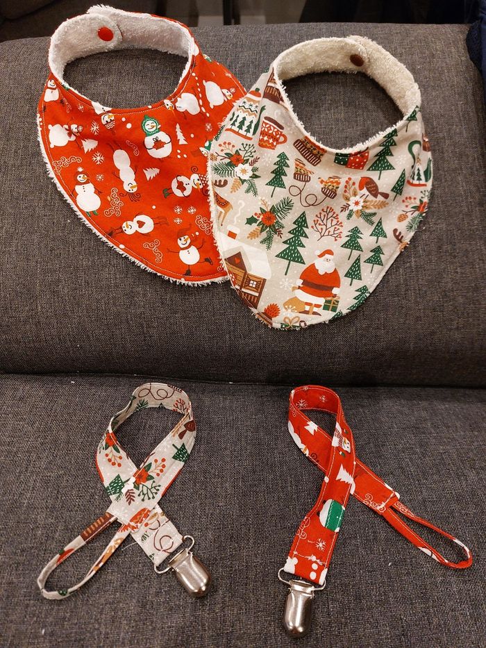 2 bavoirs et 2 porte tétine Peuvent être fait en plusieurs