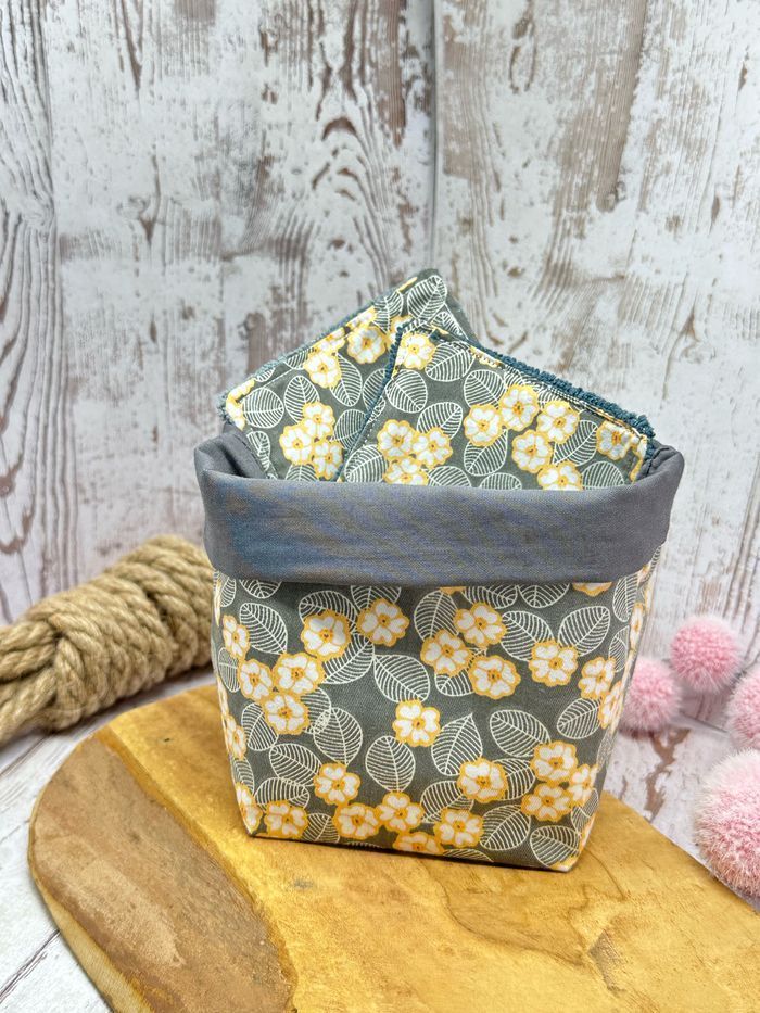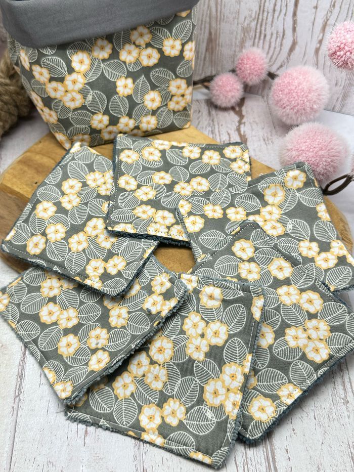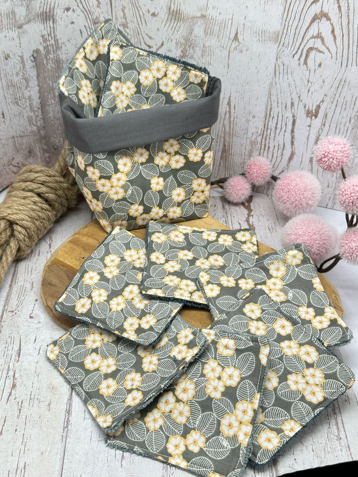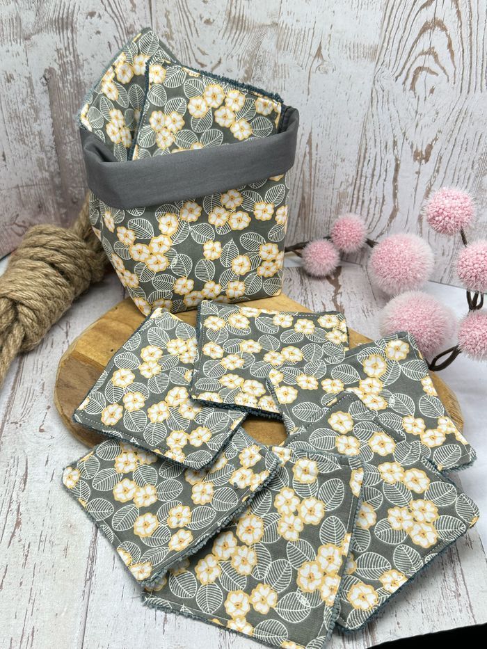 Lingettes lavable et réutilisable lot de 8 avec son panier assorti lingettes taille 9 × 9 cm en éponge coton ou en micro éponge bambou Lingettes lavable à 30°