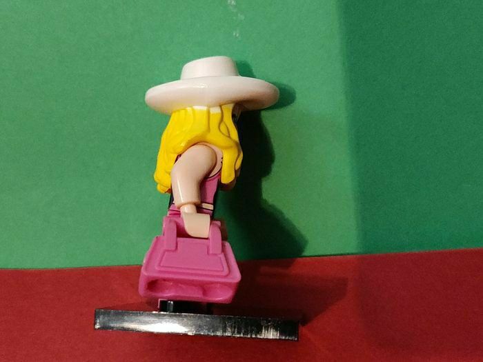 Barbie + sac à main+ socle - Figurine Compatible Il s'agit d'une figurine compatible Il ne s'agit pas d'une figurine Lego, elle s'y adapte et peut être mise sur les tenons. En parfait état, avec socle N'a jamais été exposée ou jouée. Etat neuf Envoi soigné