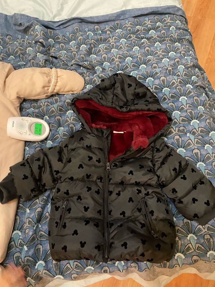 Manteau chaud fourré pour l’hiver , noir avec tetes de Mickey , très bon état en 6 mois