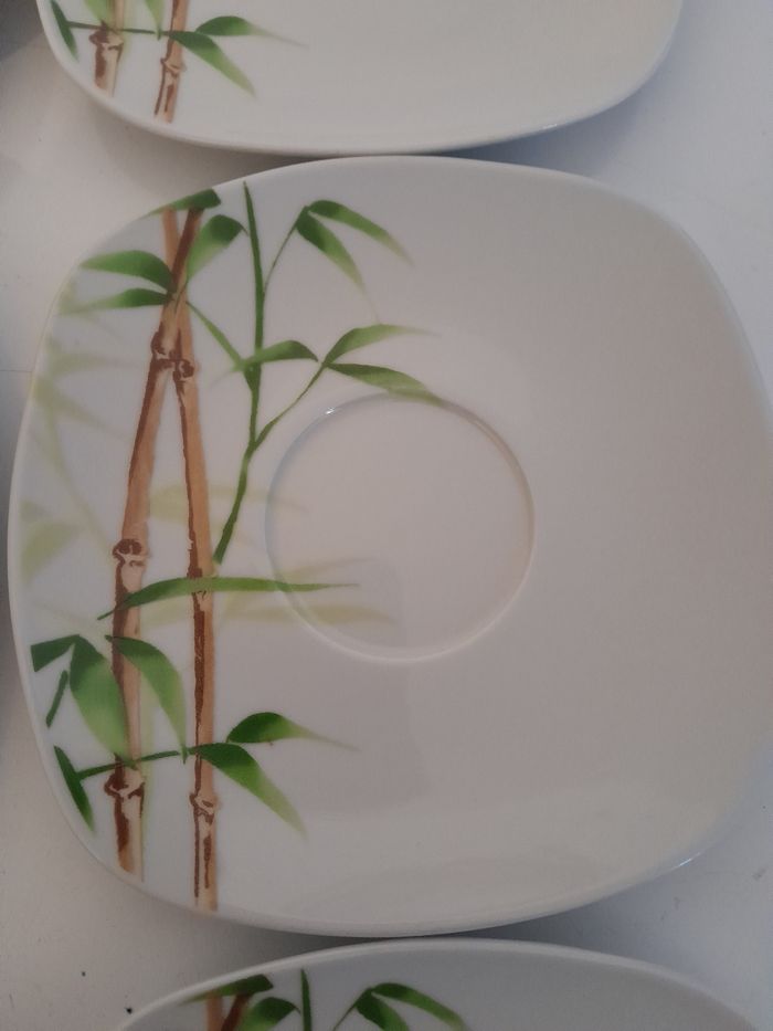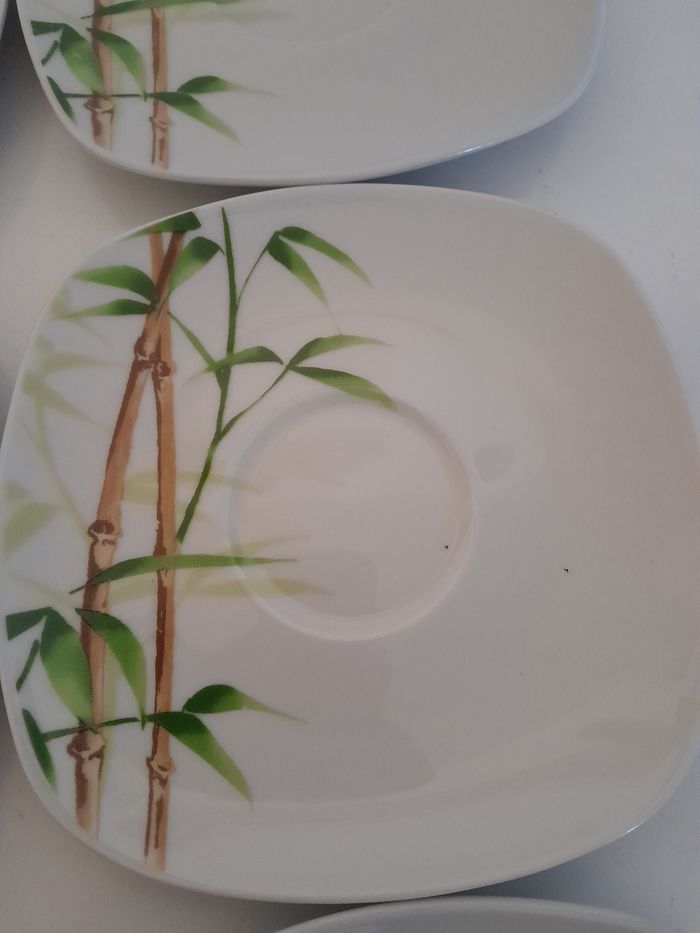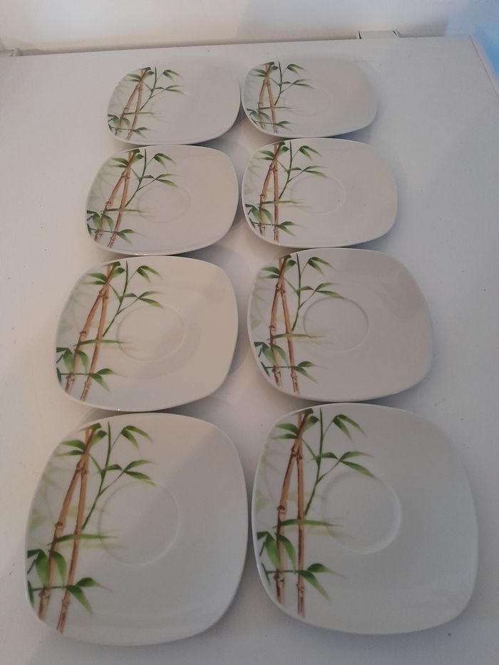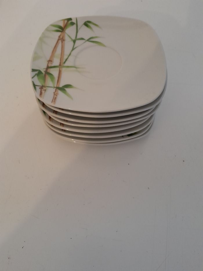 Lot de 8 soucoupes à tasse bambou en porcelaine fine. 10euros le lot