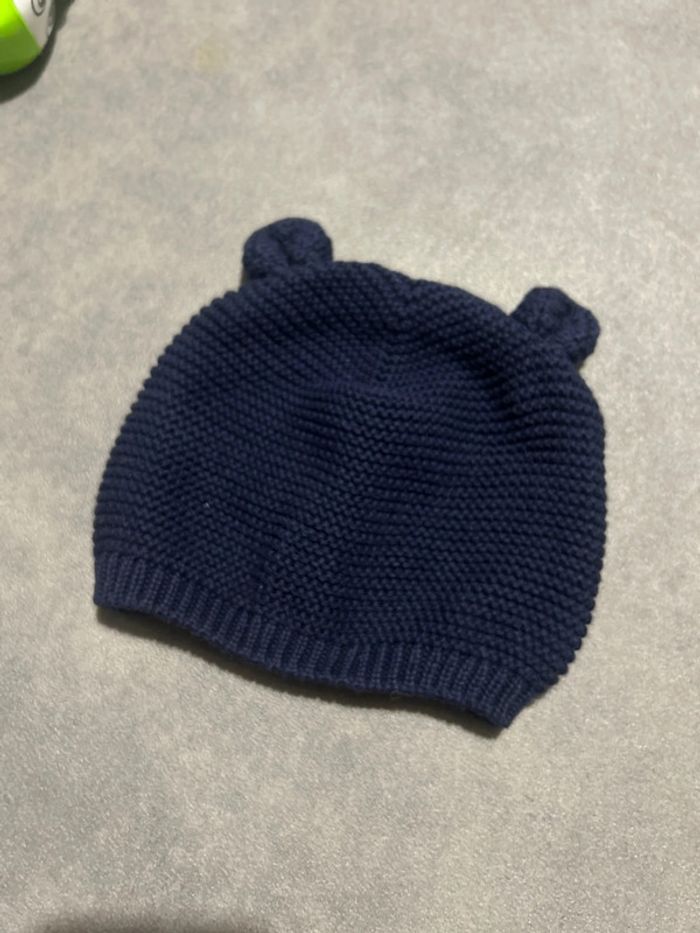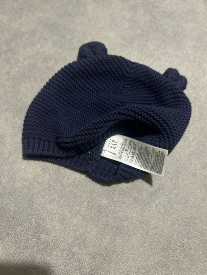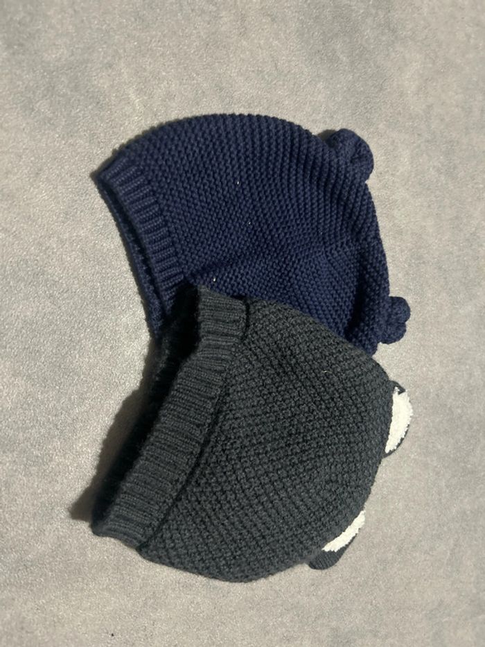 Deux bonnets 6/12 mois Bleu gap Gris fourre tape a l’oeil