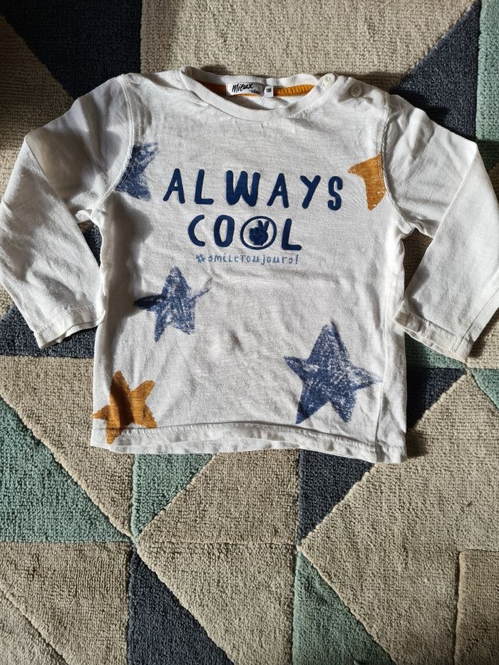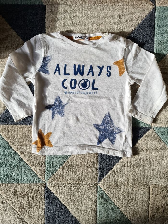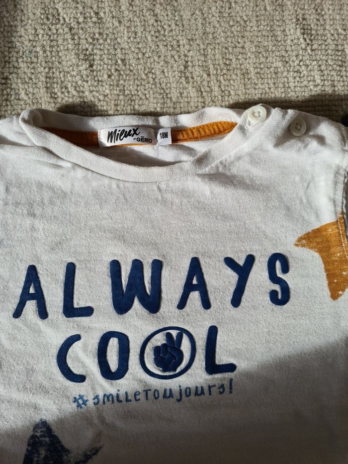 T-shirt manches longues bébé garçon Taille 18mois Marque Gémo Couleur, blanc , bleu , jaune moutarde Excellent état
