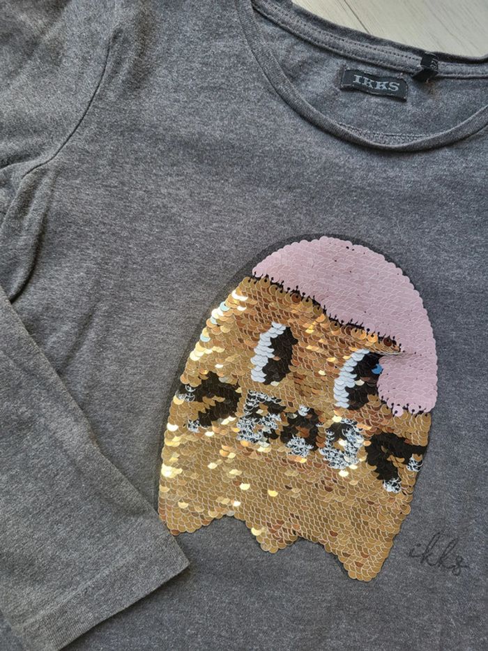 Tee shirt gris à sequins ikks fille 8ans. Très bon état. Motifs fantôme gentil. #8anstess #ikks #sequins