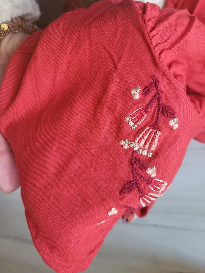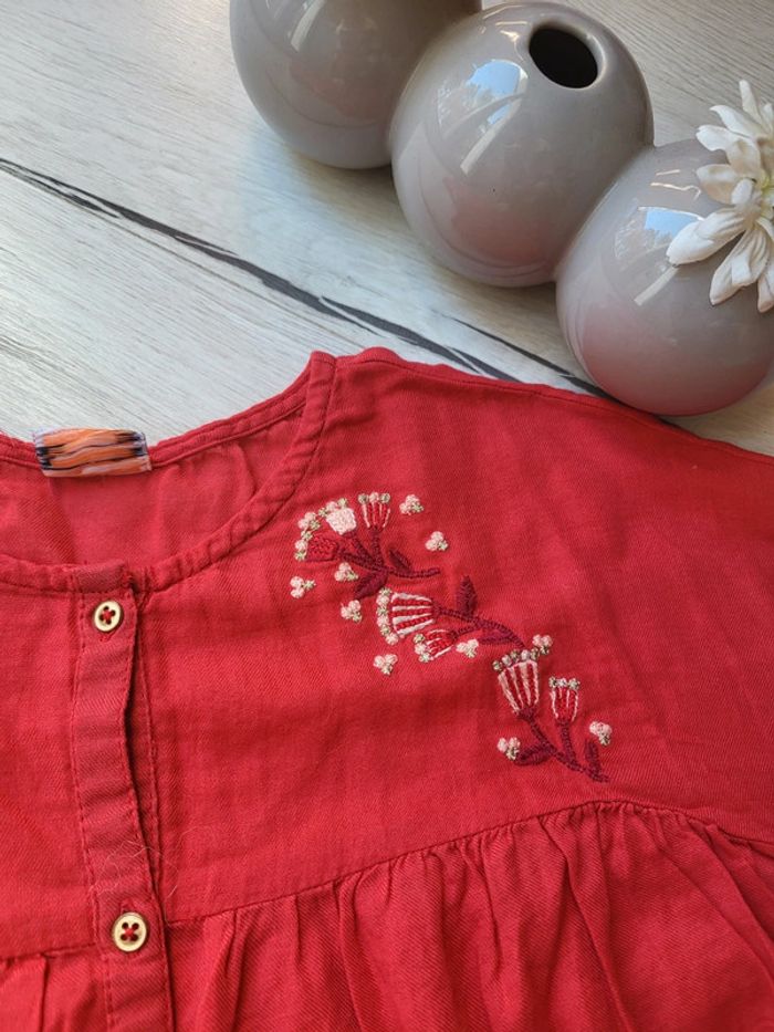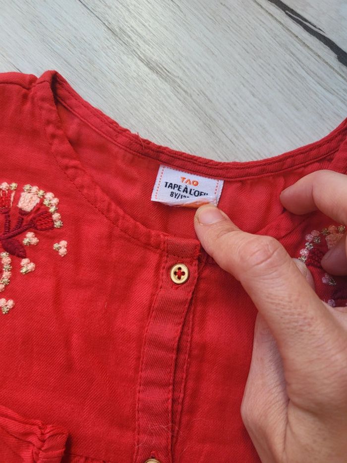 Lavée mais non portée. Trop juste pour ma fille. Taille 8ans. Jolie blouse coton. Fluide, très agréable. Broderies. Coloris rouge /corail. Tape à l'œil #8anstess #blouse #corail #broderies #8ans #tao