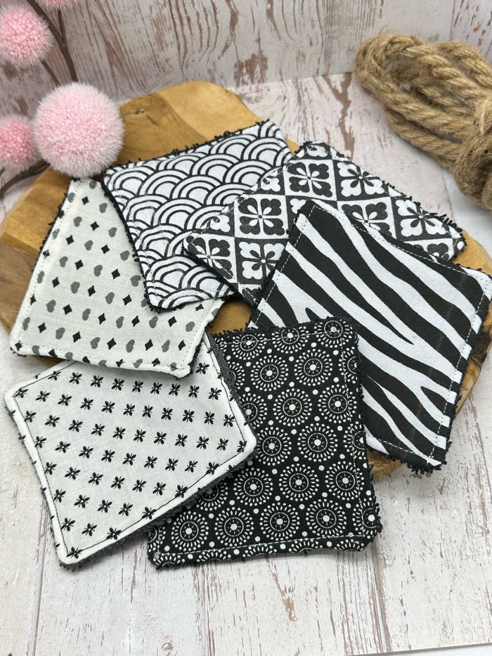 lingettes lavable et réutilisable lot de 6 taille 9x9 cm éponge en coton lavable à 30° pas de sèche linge et l’essorage au minimum pensez à humidifier la lingette avant utilisation plusieurs modèles au choix Envoi rapide et soigné Toutes les lingettes sur @ateliersdisalingettes possibilité de faire en plus grande quantité lingettes par 6 : 4,5€ lingettes par 8 : 6€ lingettes par 10 : 7,5€ lingettes par 12 : 9€….. panier à 10€