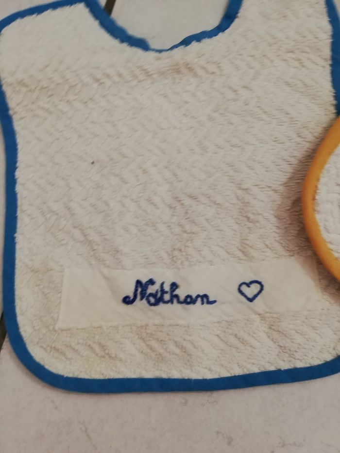 Lots de 2 bavoir personnaliser au jolie prénom de Nathan très bon état
