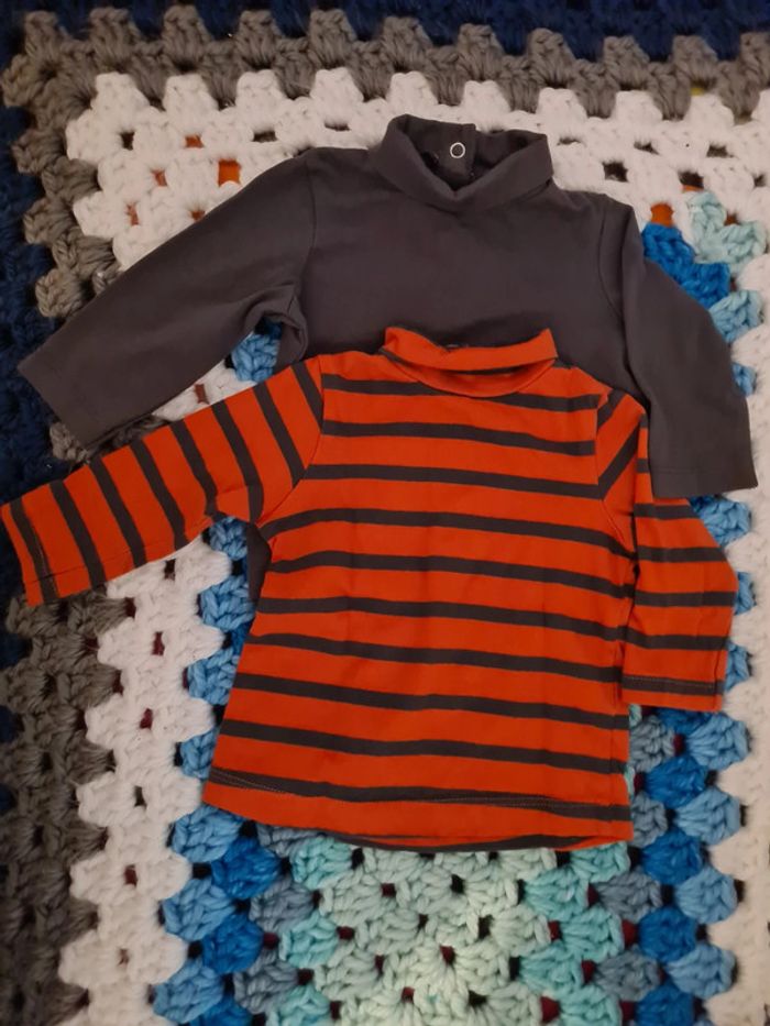 Lot 2 tee-shirts manches longues col roulé 9 mois - photo numéro 1