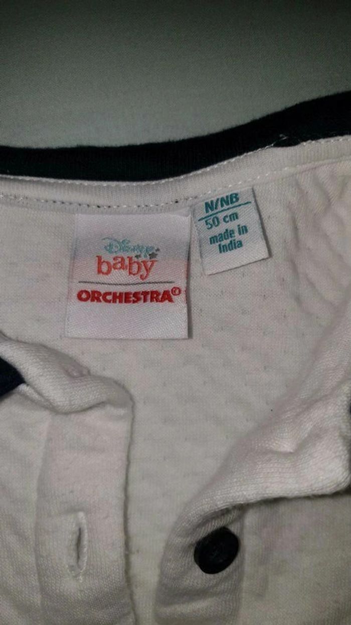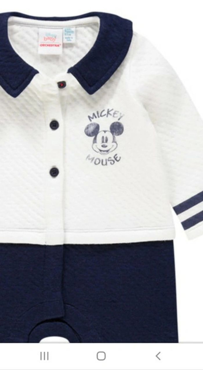 Taille 50 cm Acheté 3 mai 2021 Portée 3 fois Payé 13€99 Le flocage est passé volontairement (Voir sur site orchestra ou photo n4) Combinaison longue. Col chemise. Boutonnière sur le devant. Print Mickey sur le devant. Rayures au niveau des poignets. Patch Mickey au niveau des genoux. Ouverture pressionnée à l'entrejambe. #chrisloute2004_naissance
