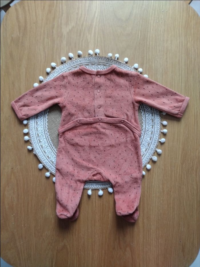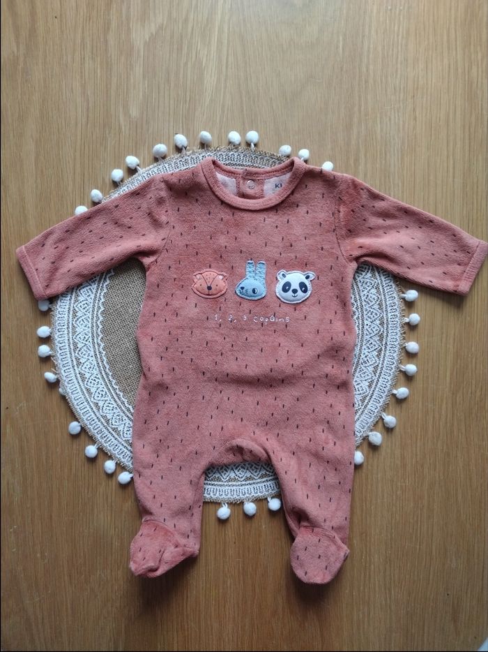 Pyjama grenouillère en velours bébé garçon. Peu porté, très bon état Taille 1 mois