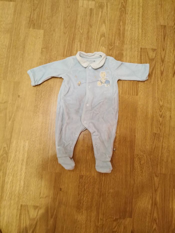 Pijama en velours, avec pieds et col. Fermeture à l'avant par boutons pressions. 1M=53cm.