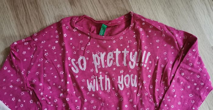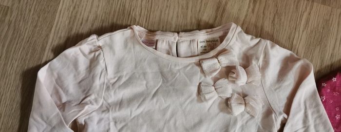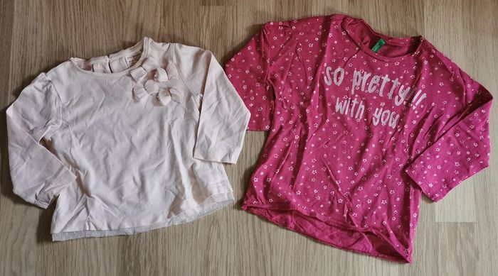 T-shirt manches longues, col rond. 18 mois (rose pâle =Zara et fushia étoiles =Benetton). Prix pour le lot.