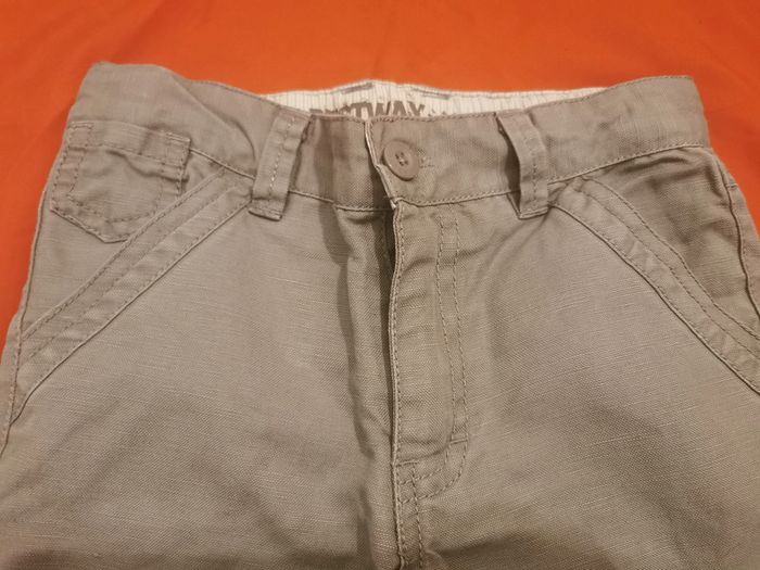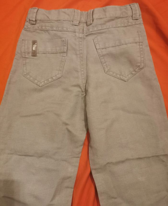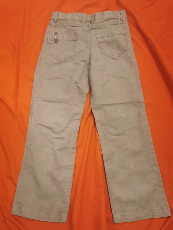 Pantalon habillé gris clair "bestway denim" taille 5 ans. Bouton et fermeture éclair, passants pour ceinture, taille réglable par élastique intérieur.2 poches latérales plus une petite sur le devant, 2 poches sur le derrière. En parfait état. Réduction sur les lots à partir de 2 articles achetés.