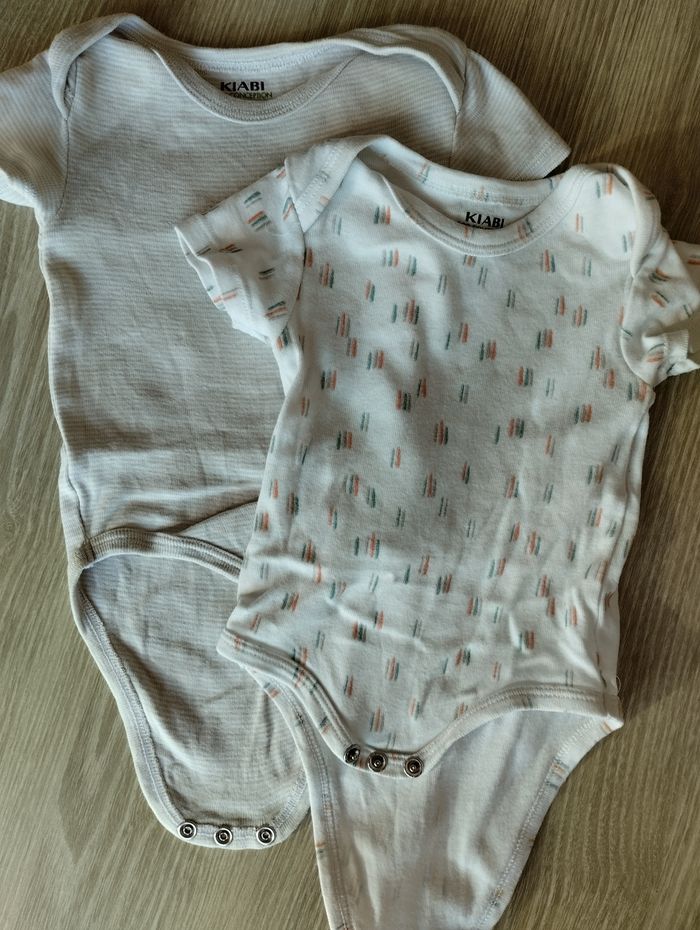 Lot 2 bodys manches courtes, taille 3 mois. Kiabi. Très bon état.