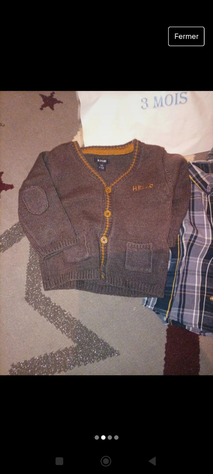 Excellent état aucun défaut ni tâches ni trou. Différentes marques Okaïdi, Orchestra, Vertbaudet . Lot non dissociables . J'offre le gilet sans manche gris Okaïdi