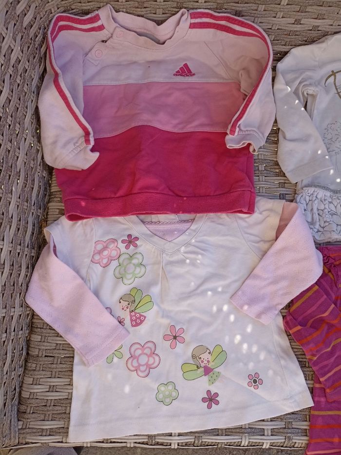 Lot de 5 tee shrit manches longues et un sweat adidas Taille 12 mois deux sont inscrit 18 mois mais peuvent convenir a du 12 Remise sur lot possible car beaucoup de 12 mois