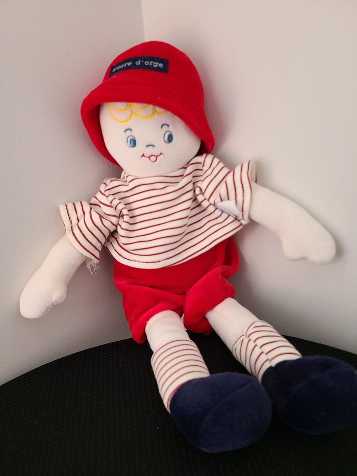 DOUDOU POUPÉE GARÇON MARIN ROUGE SUCRE D'ORGE 45
