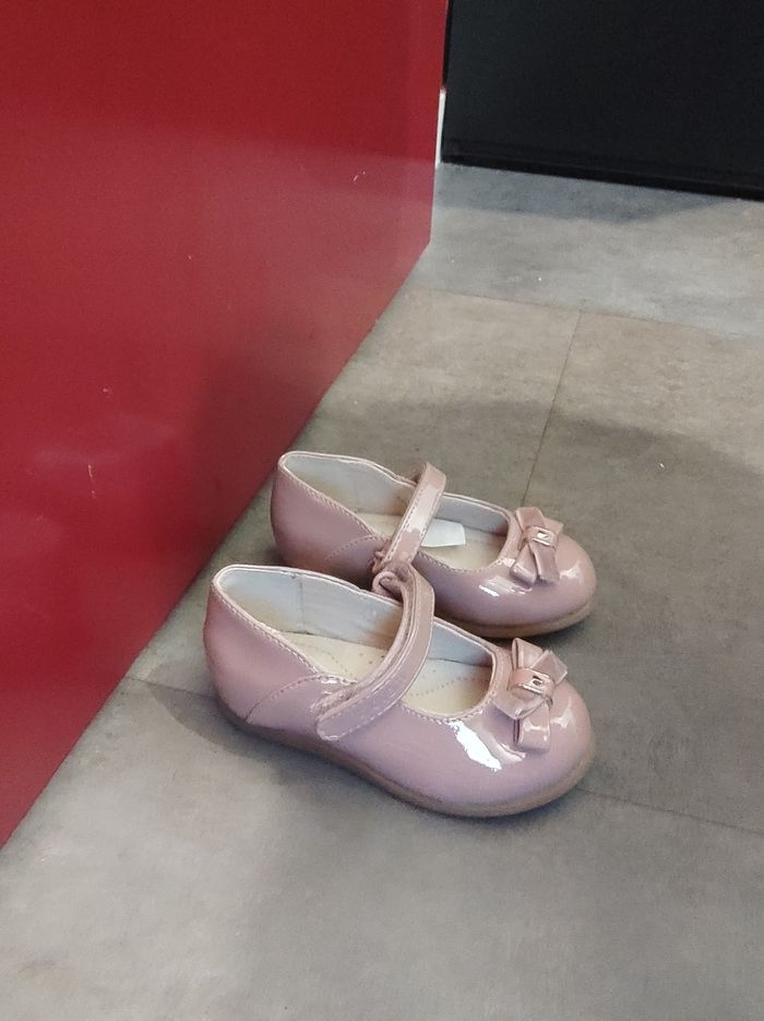 Chaussure en cuir vernie petite fille taille 20 marque Mayoral. Le noeud est une partie en cuir une partie en velours. Double épaisseur niveau semelle pour une bonne marche des le plus jeune âge . Porter une seule fois pour le jour J de ces 1 an quelques heures donc comme neuve.