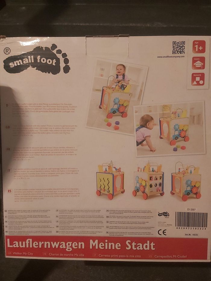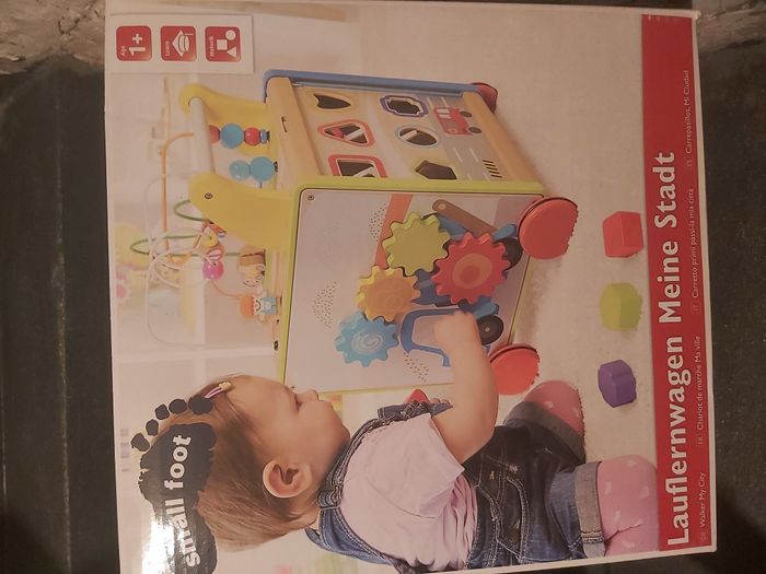 DESCRIPTION Avec ce chariot de marche en bois, l´enfant peut améliorer ses capacités motrices. Engrenages, éléments à encastrer ou circuit de motricité : fini l´ennui pour les enfants. Grâce au caoutchouc intégré, les roues glissent en silence sur le sol. On peut également ranger des jouets dans le chariot. CARACTÉRISTIQUES Age minimum recommandé 12 mois Coloris Multicolore Matière principale Bois Hauteur du produit 51,00 cm Largeur du produit 33,00 cm Longueur 30,00 cm Poids du produit 4,08 kg Tous mes prix sont négociables Lancez-vous ! Que risquez vous ?