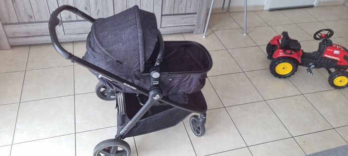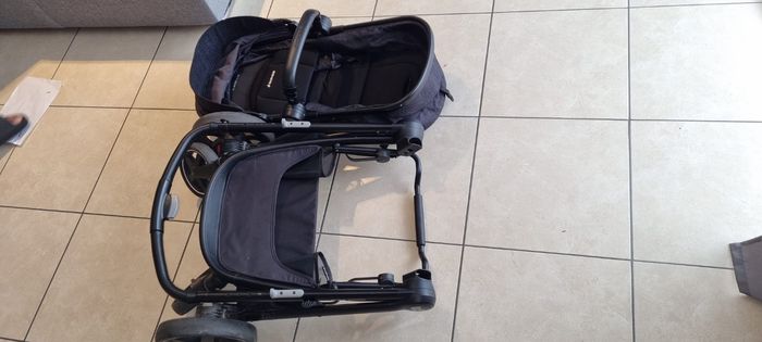 Poussette 3 en 1. A utiliser dès la naissance jusqu'à 3 ans de bébé. (3- 15kg). Mode landeau et mode assis assez vite réglé. En bon état . Rangement facile. ( Bonus: habillage de pluie)
