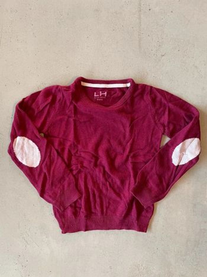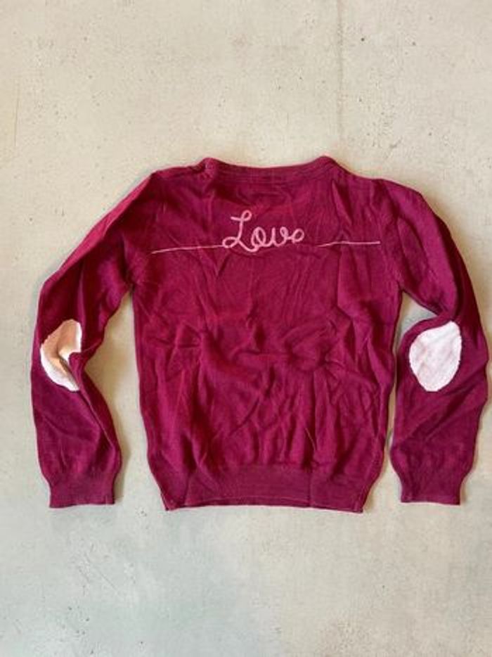 Pull rose fuschia au motif fantaisie qui fait craquer les petites filles! 8 ans marque la Halle. Très bon état. Motif cœur aux coudes. #printemps Pour constituer un lot avec remise sur cette catégorie, tape : #nojolili_fille8ans