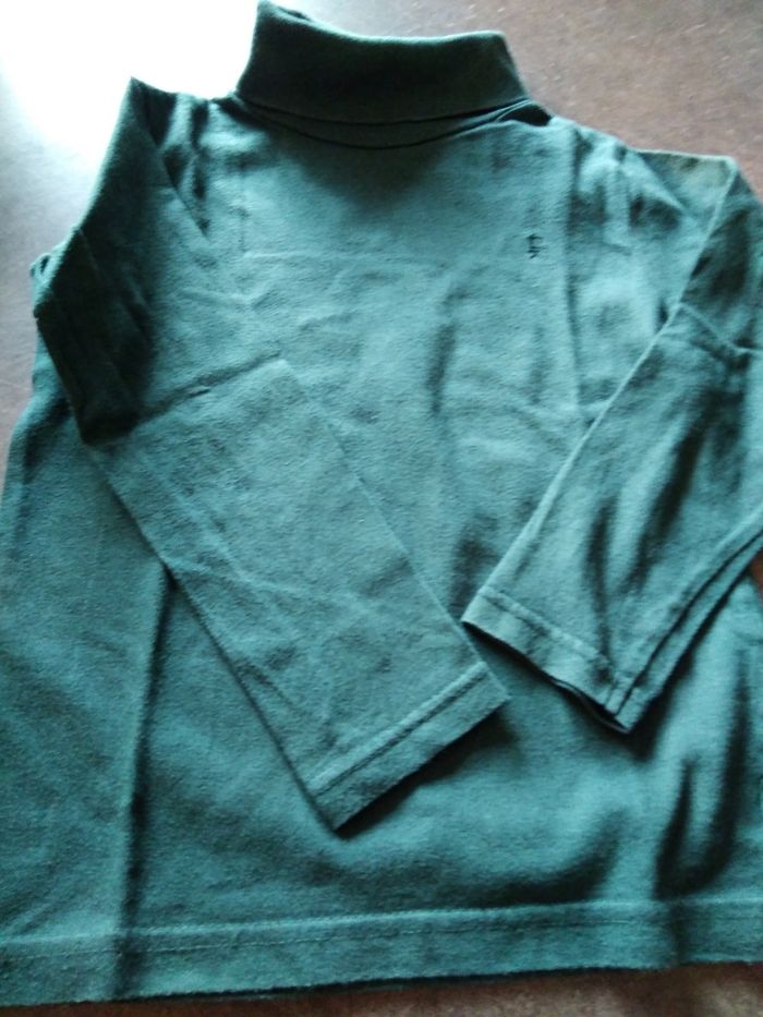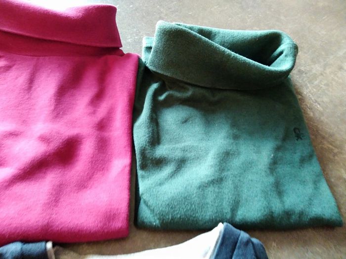 Bonjour, je vends un lot de 2 col roulé en 5 ans, 1 bordeaux et l'autre vert foncé, très bon état. Okaidi