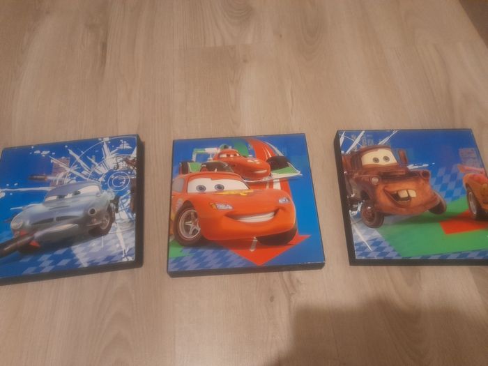 Lot de 3 petits tableaux "The Cars" 20x20cms en très bon état