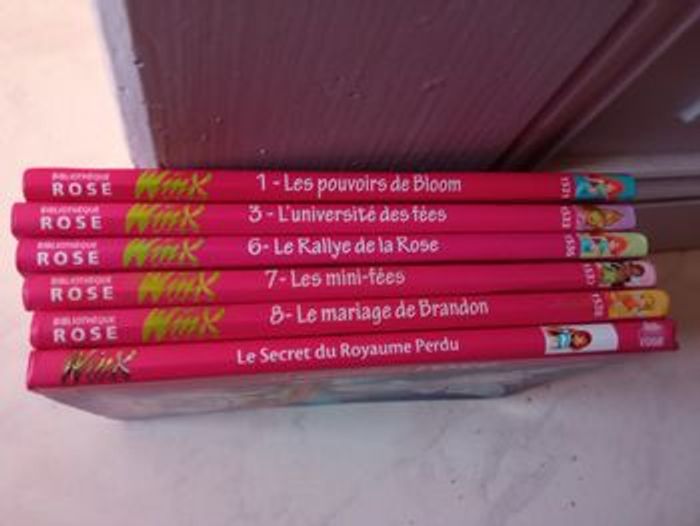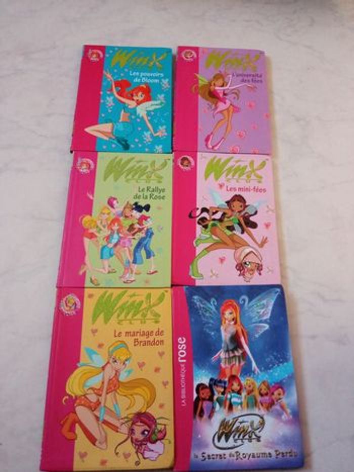 Vends un lot de 6 romans les Winx à 10 euros le lot 1 les pouvoirs de bloom 3 l université des fées 6 le rallye des roses 7 les Mini fées 8 le mariage de Brandon Le secret du royaume perdu