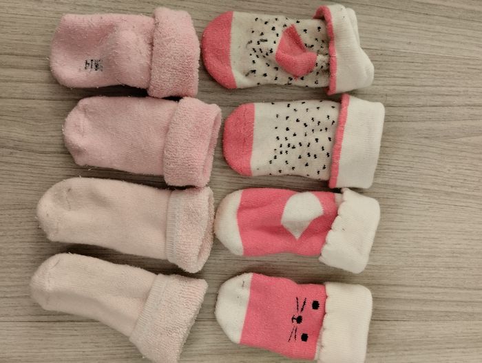 Lot 4 paires chaussettes naissance, pointure 13-14. Kiabi. Bon état.