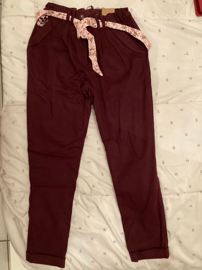 Joli pantalon chaud car doublé Taille 9 ans Coloris Bordeaux Ceinture ruban fleuri Revers au bas du pantalon Marque sergent major Neuf et étiqueté Non négociable Envoi rapide et soigné