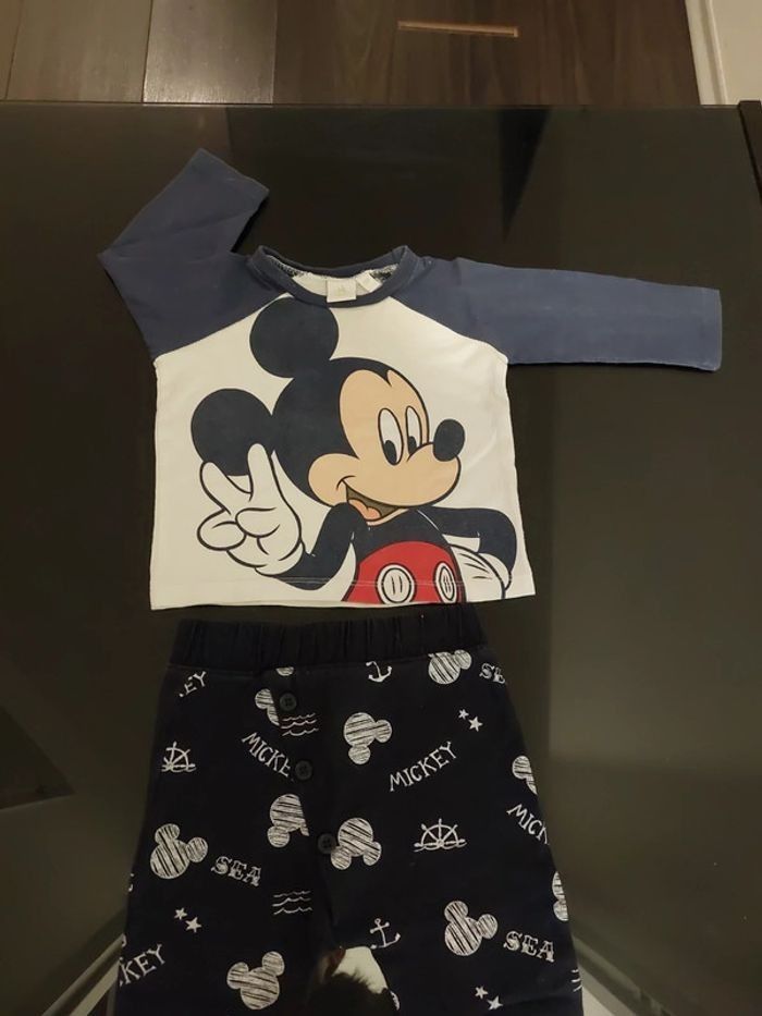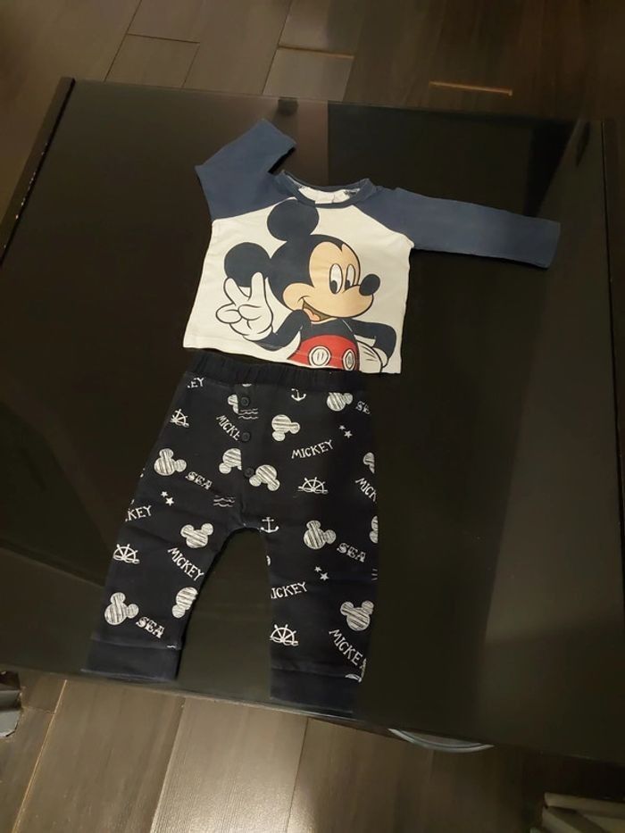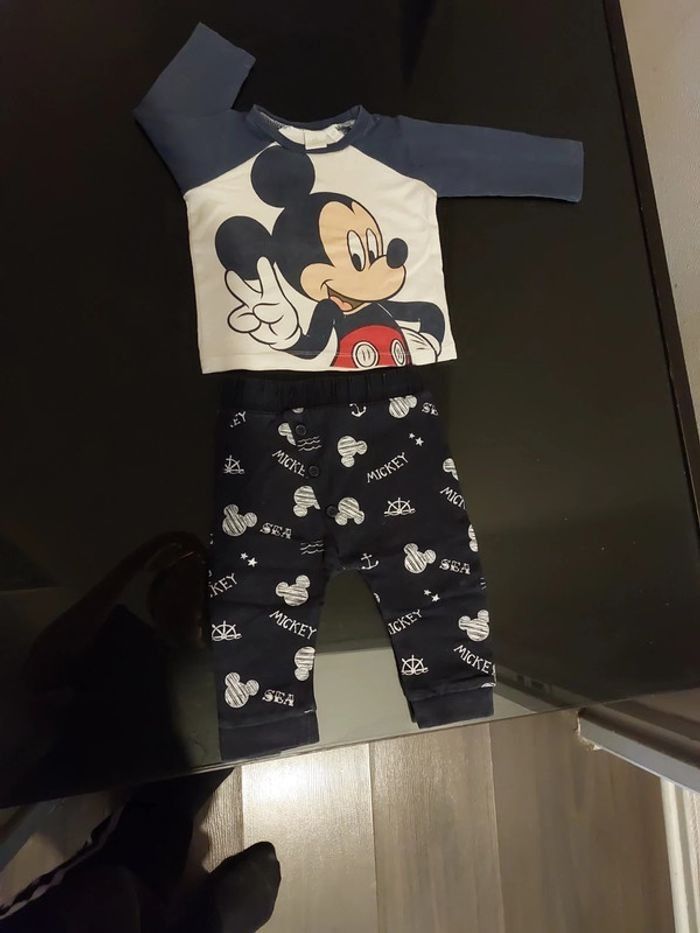 Ensemble bébé Mickey taille 6 mois en très bon état, couleur bleu marine et blanc. Envoi très rapide N'hésitez pas à me contacter si vous souhaitez composer votre lot ou si vous avez des questions j'y répondrais avec plaisir :)