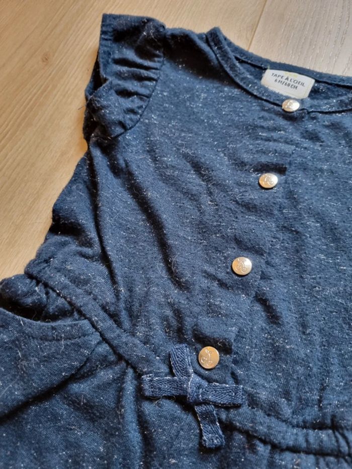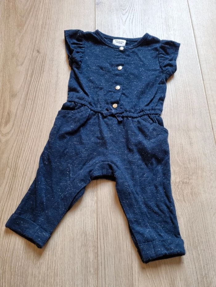 Combinaison pantalon Bleu marine chiné de fils argenté Pression argenté et petit nœud Marque Tape à l'œil 6 mois Bon état