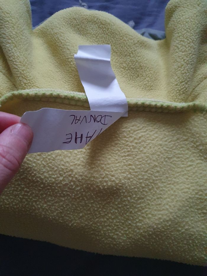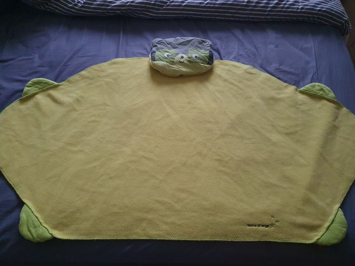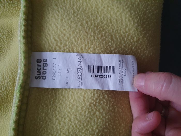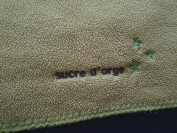 Couverture polaire de marque Sucre d'Orge pour envelopper bébé ou un enfant. En très bon état, étiquette avec le prénom et nom mais peut être coupé.
