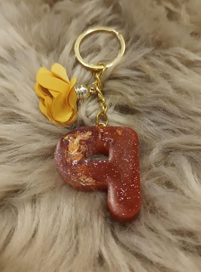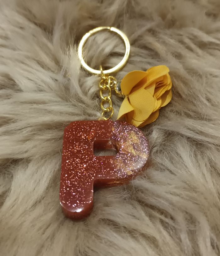 Porte cles lettre P en résine epoxy dans les tons bordeaux et rose pailletés Hauteur 4 cm Neuf sans étiquette #coraliebricabrac #portecles #portecle