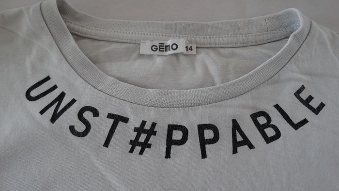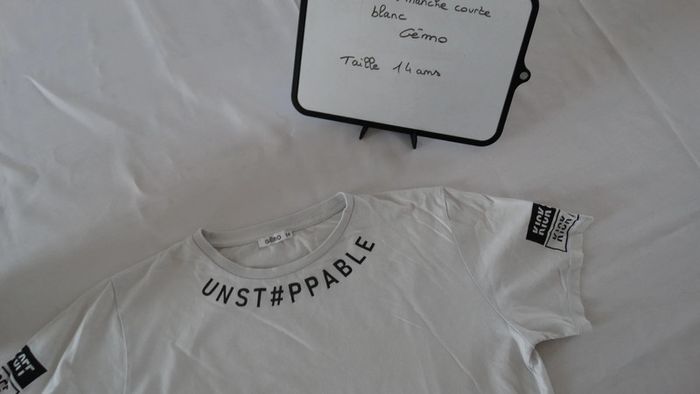 Tee shirt manche courte blanc GEMO Motif noir/gris Ecriture noir