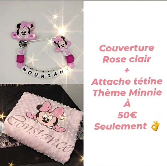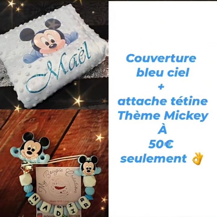Couverture et attache tétine Minnie ou Mickey au choix