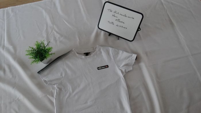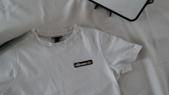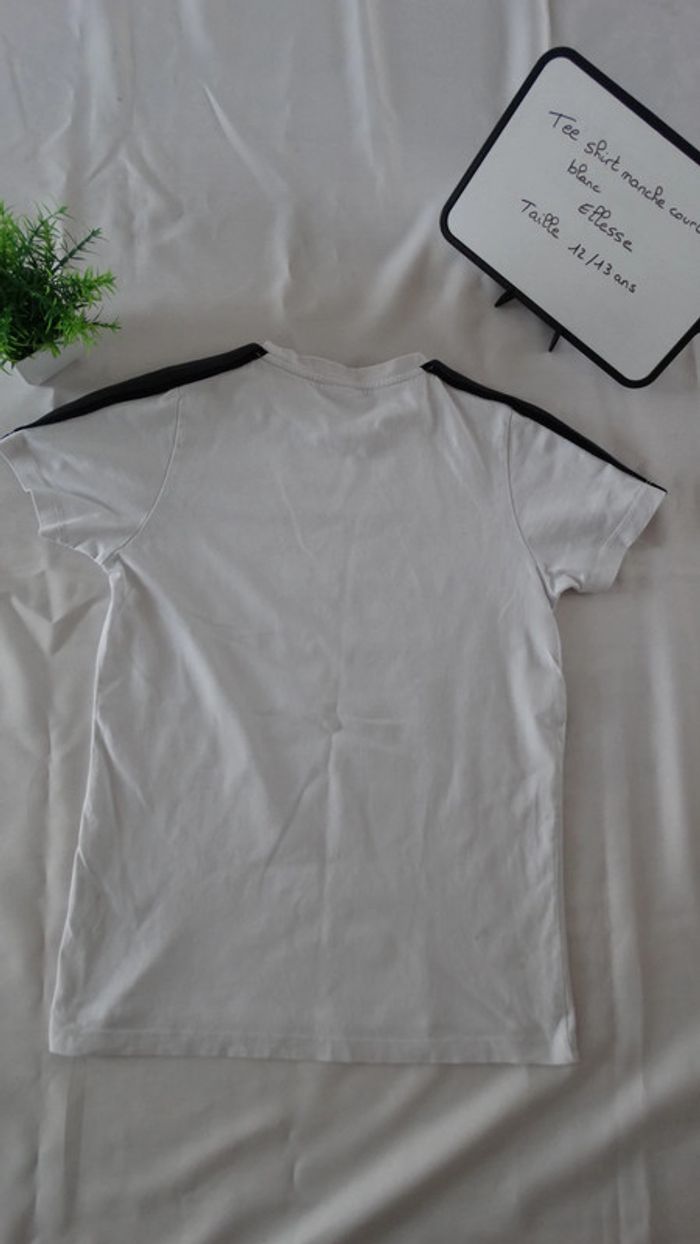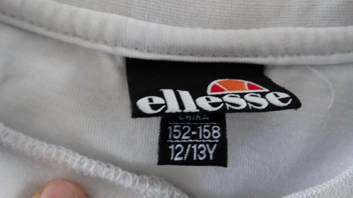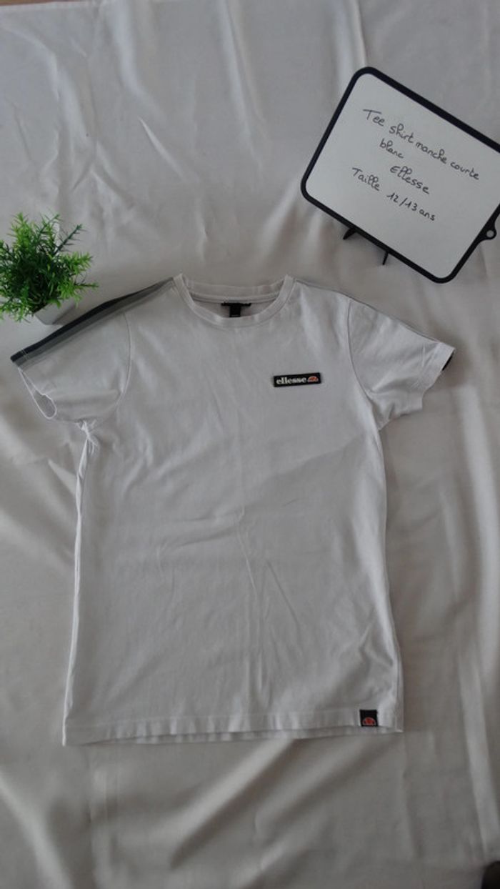 Tee shirt manche courte blanc ELLESSE Bandes # gris /noir sur les épaules Taches en bas du tee shirt devant et derrière "voir photos 9/10 Taille 12/13 ans