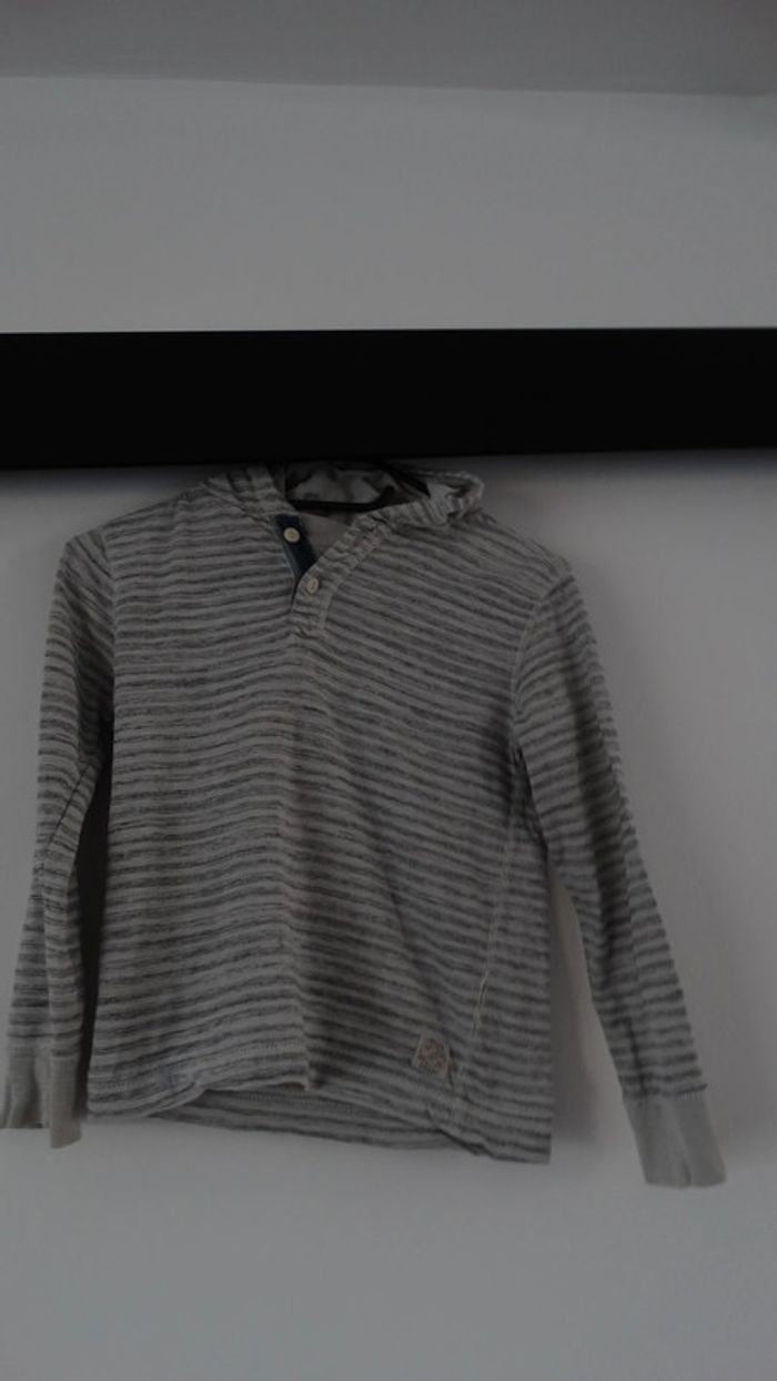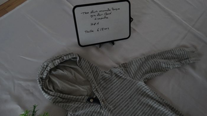 Tee shirt manche longue gris clair/gris foncé à capuche H&M Taille 6/8 ans