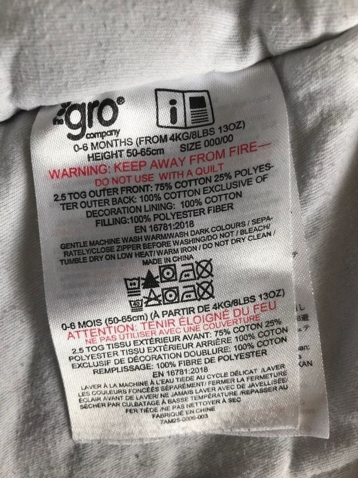 Gigoteuse chaude marque grobag, taille 0-6mois (50 a 65 cm) tog 2,5.