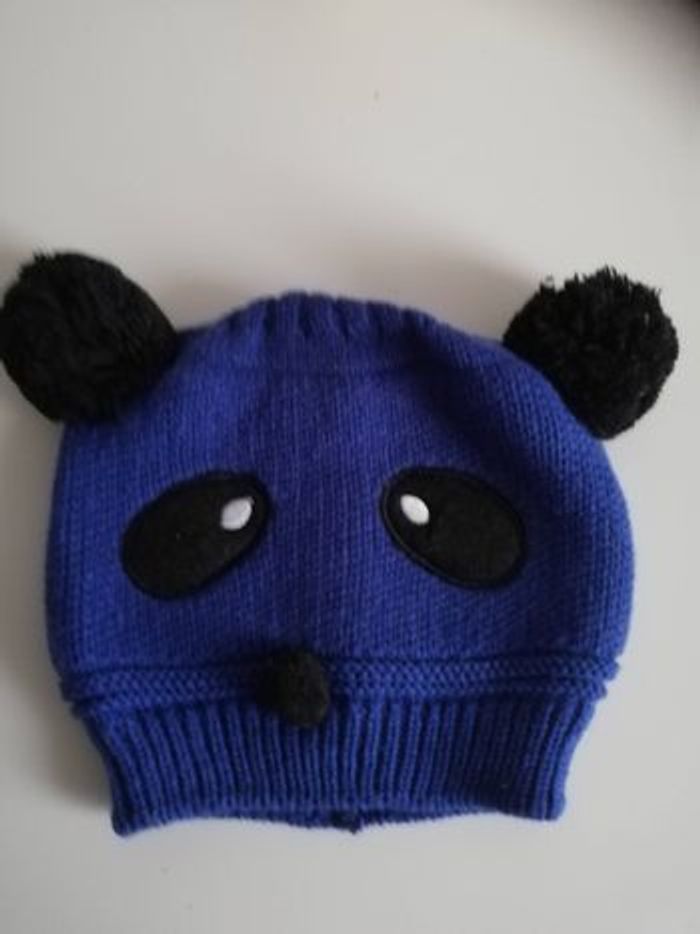 Bonnet panda bleu et noir - photo numéro 1