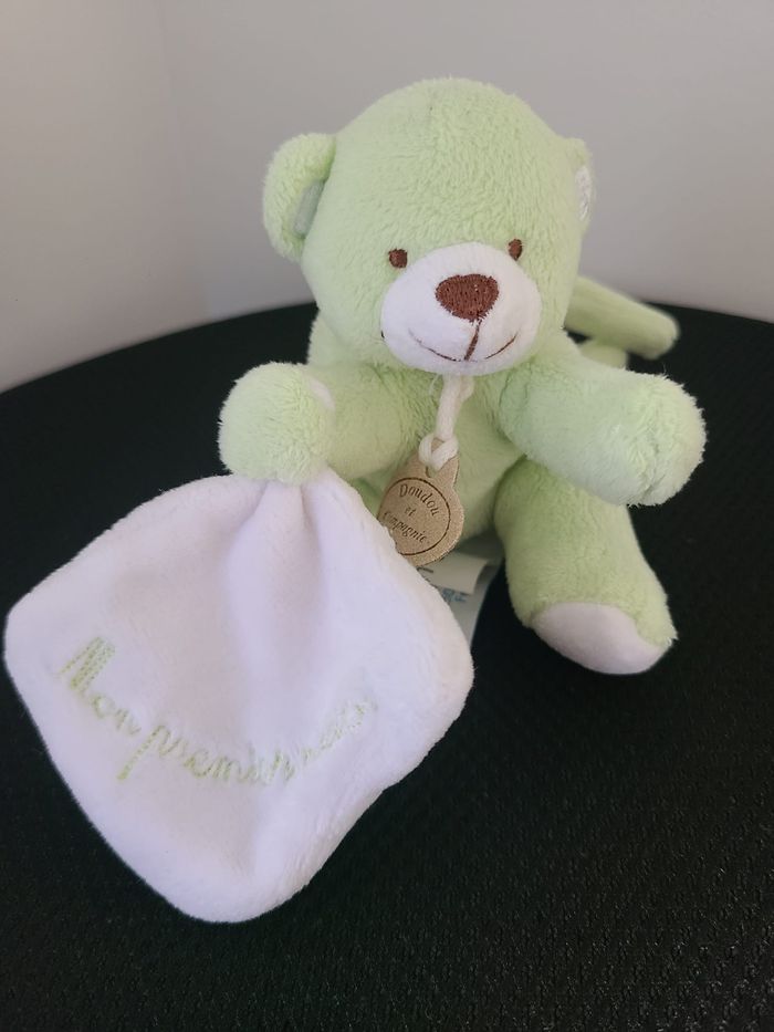 DOUDOU ET COMPAGNIE ATTACHE TÉTINE OURS VERT AVEC MOUCHOIR 56