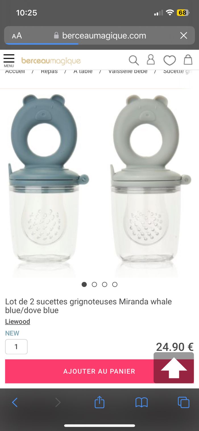 Jamais déballé, neuf Lot de 2, idéal pour introduire les aliments solide. Facile à saisir par les mains, 2 tailles de tétine fournies Couvercle en tritan (polyester sans BPA) et polypropylène Vendus 25€ sur le net