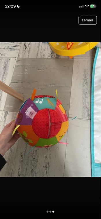 Vends petite balle bleu pour bébé en très bon état. Elle est molle et fais un bruit de hochet. Envoi rapide