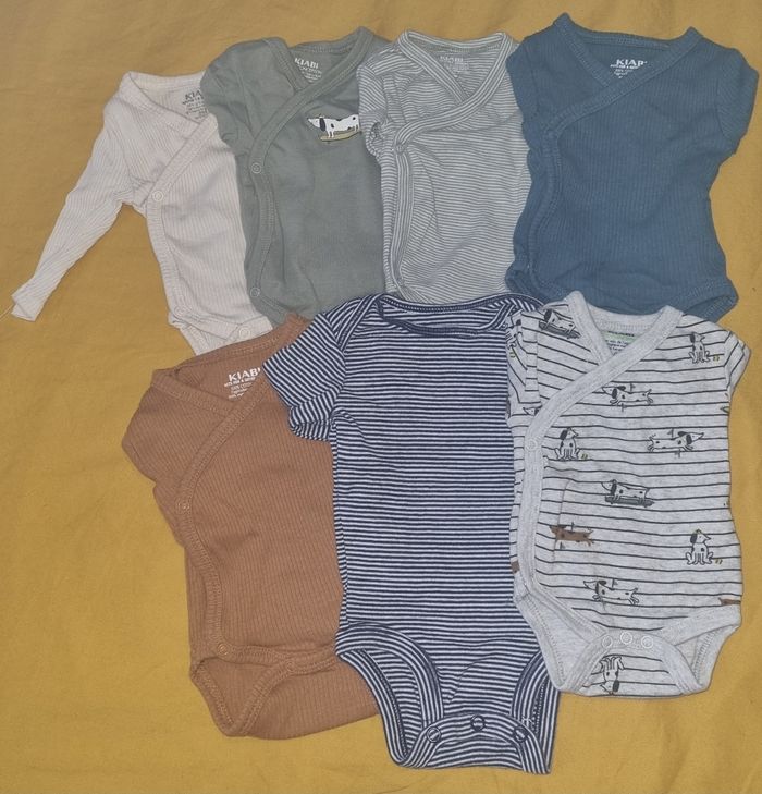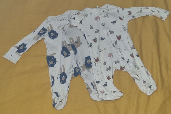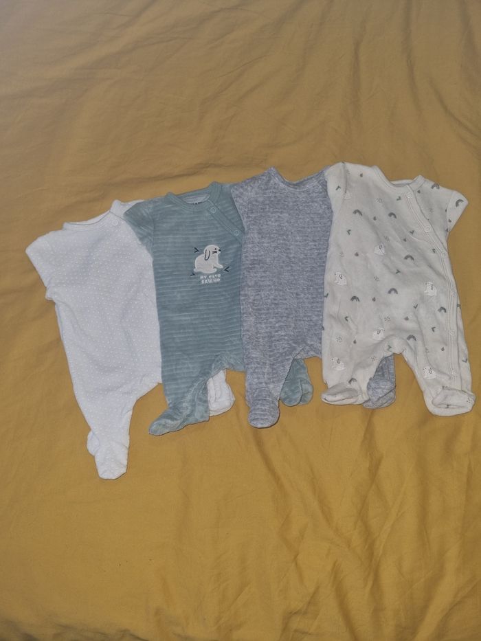 Lot de vêtements naissance en excellent état de la marque Kiabi et Carter's 4 pyjamas velours ouverture devant 7 bodys manche longue dont 6 ouvertures devant 2 pyjamas cotons ouverture devant avec fermeture éclair 4 bodys manche courte en coton 6 bonnet dont 1 velour