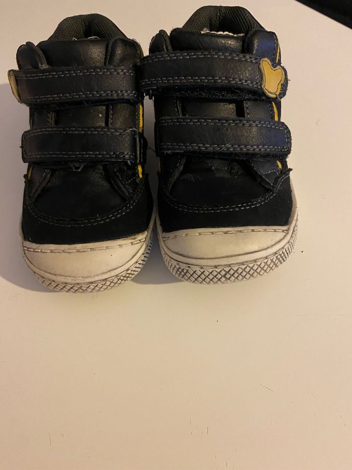 Chaussures en très bon état Disney Mickey taille 22 le bas la semelle effet délavé noir blanc acheté comme sa c pas sale lol. Avec scratch