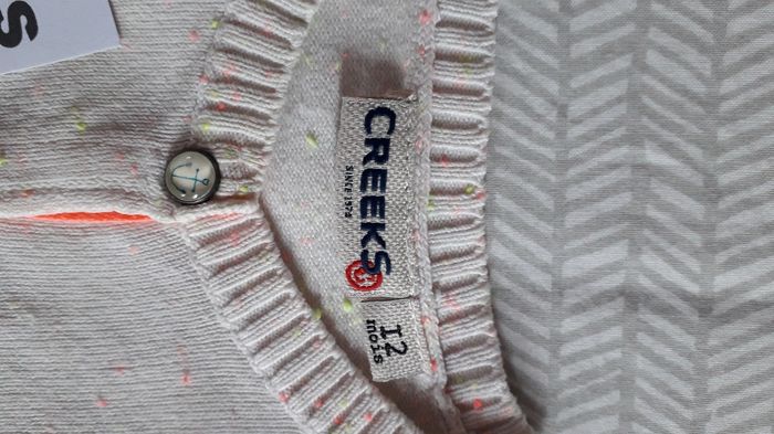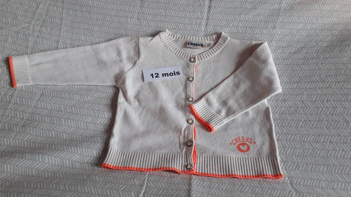 Cardigan blanc chiné rose 12 mois Boutons pression Peu porté Coton