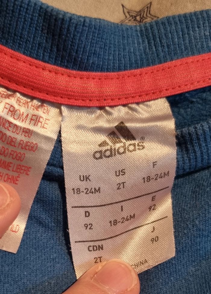 Sweat adidas en très bon état. Taille 18-24 mois Donne avec le pantalon qui est troué et taché.