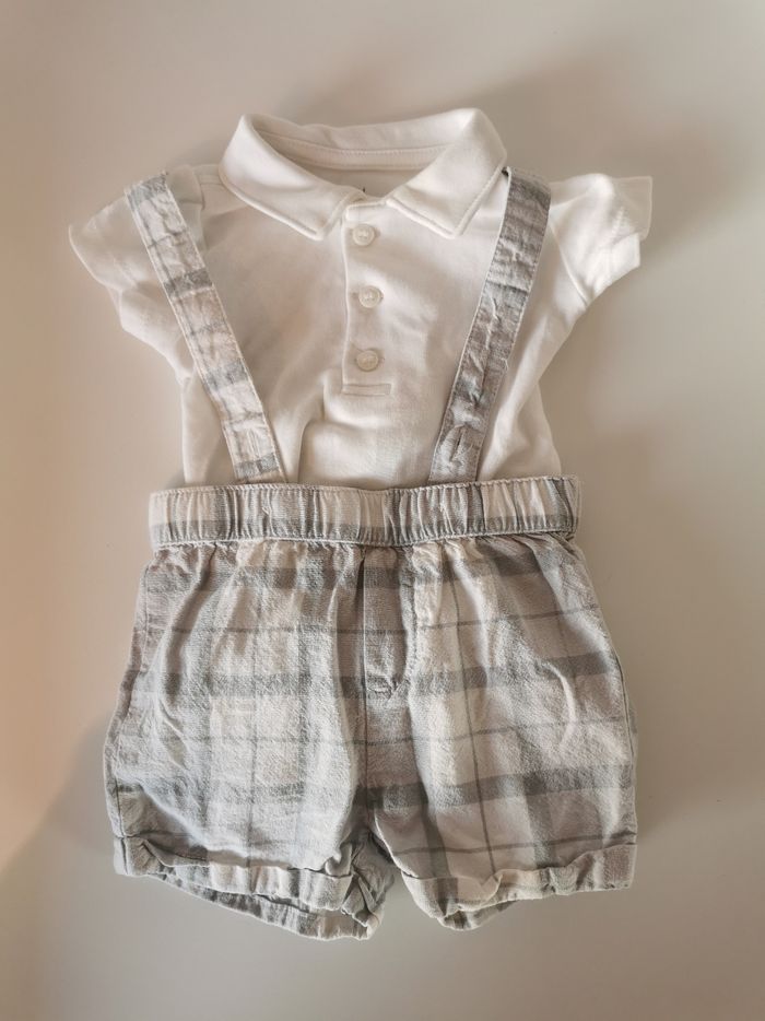 En très bon état taille 2 à 4 mois. Bodie polo et salopette courte.